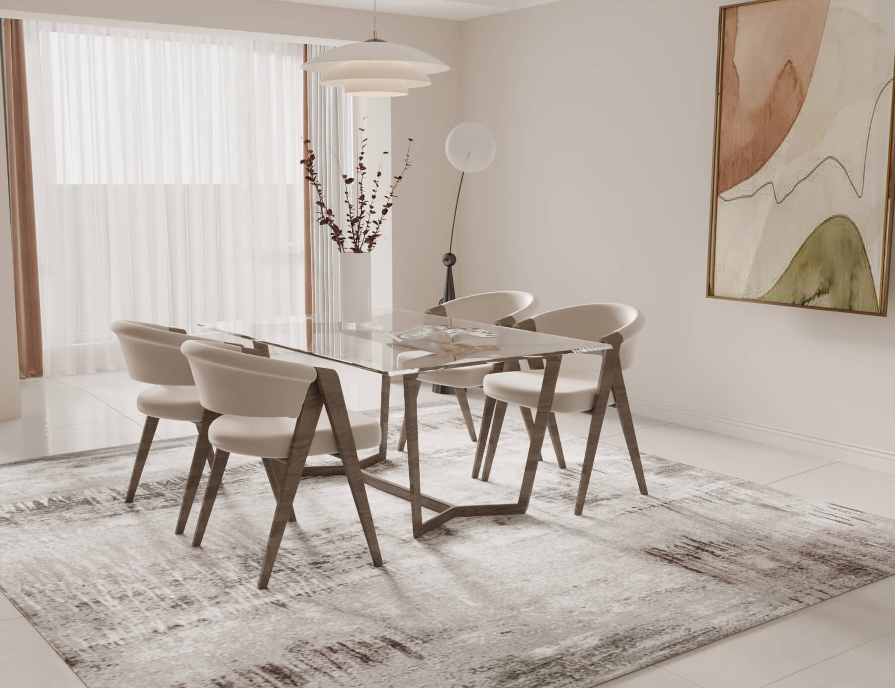 | الخامات | السطح زجاج سيكوريت 12 ملي + قاعدة الطاولة حديد + الكراسي خشب سولد |